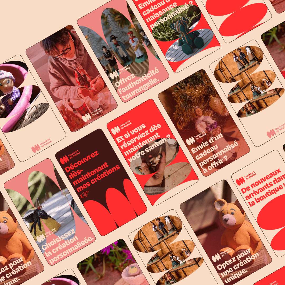 Dans le cadre du développement de Model’art de Sophie, j’ai opéré sur la création complète de son identité visuelle afin d’accompagner l’évolution et la diversification de son activité. Fondée en 2001, cette entreprise artisanale spécialisée dans les santons tourangeaux, réalisés dans le respect de la tradition provençale, met en valeur l’histoire de la Touraine à travers ses personnages, ses métiers d’antan et ses figures emblématiques.